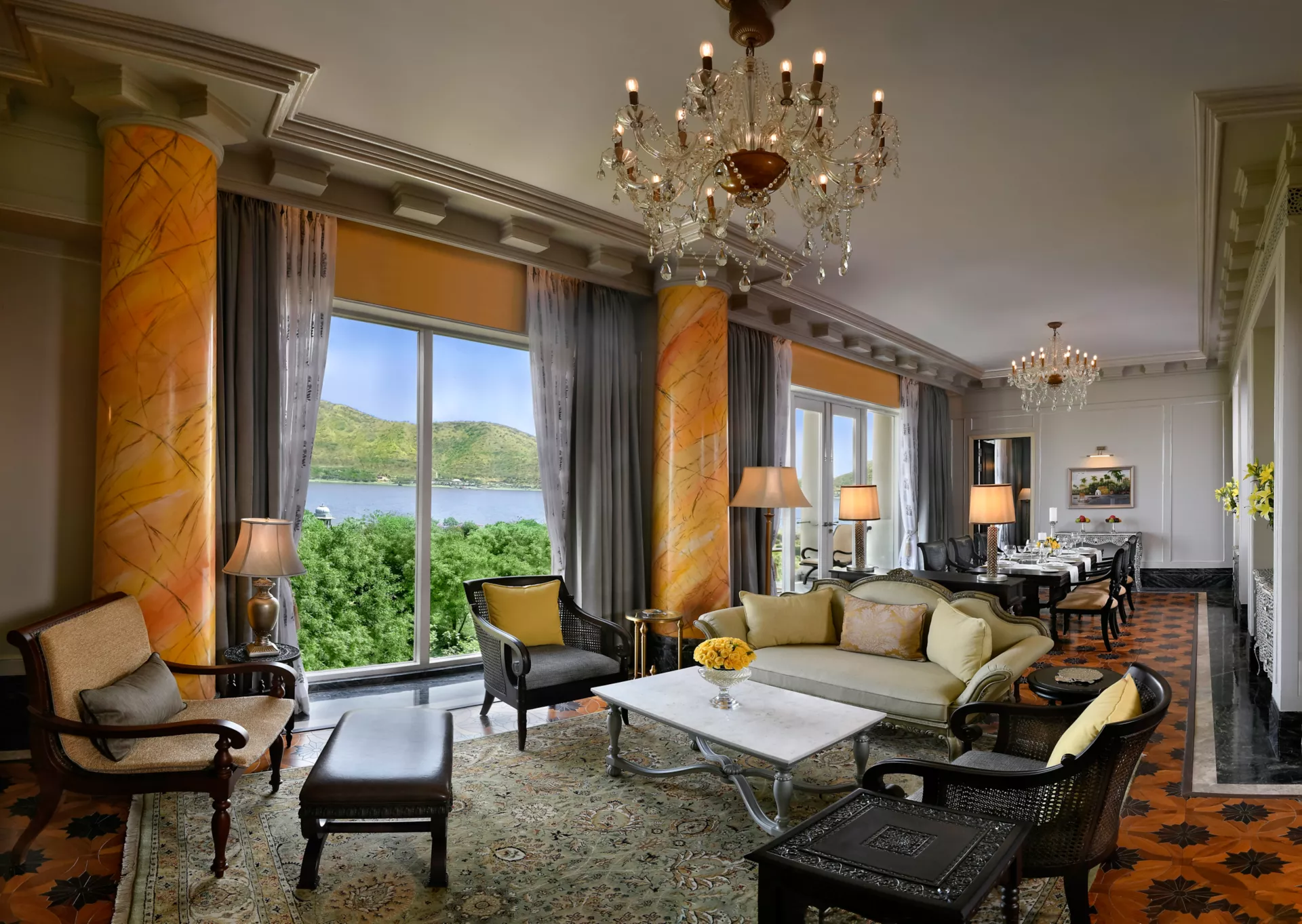 Step into a realm of quiet grandeur with this expansive 120 sqm suite at Raffles Lakeshore Udaipur, situated in a distinguished residence away from the island. Offering panoramic views of Udai Sagar Lake, the suite showcases bespoke interiors that blend elegance and comfort. A spacious lounge invites you to unwind, while the elegant bathroom retreat is designed for rejuvenation and pampering.